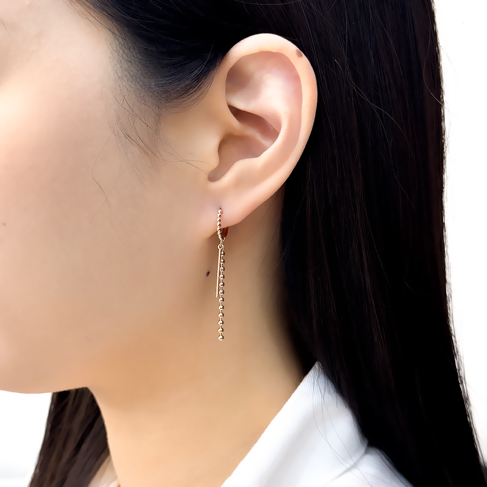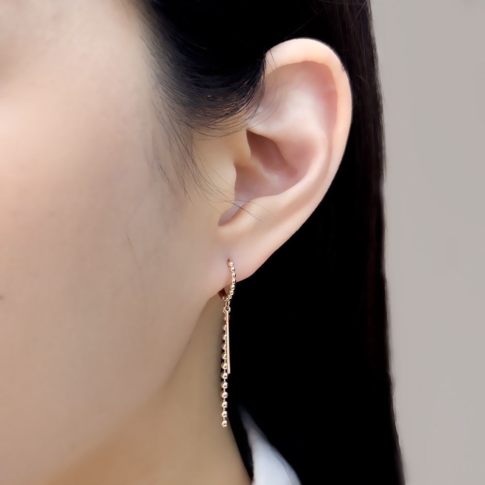 14k 투 드롭 볼 원터치 귀걸이