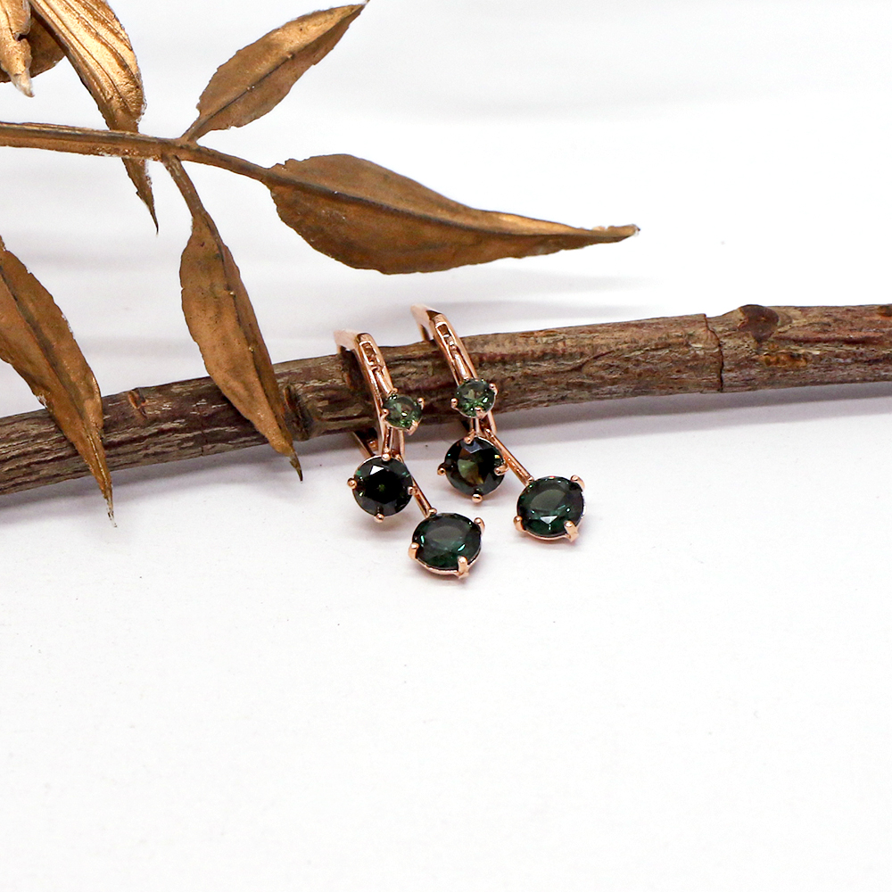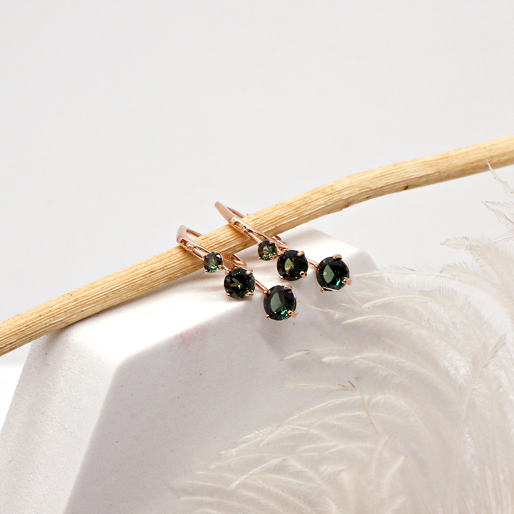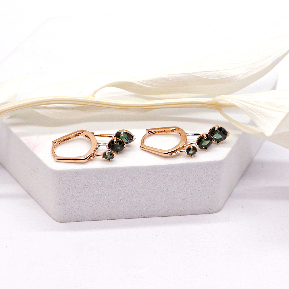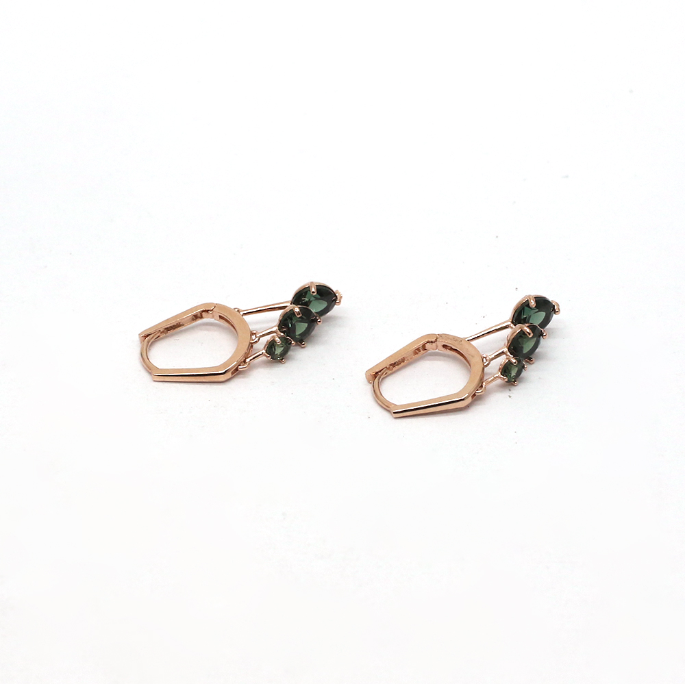 14k 그린큐 트리플 드롭 원터치 귀걸이
