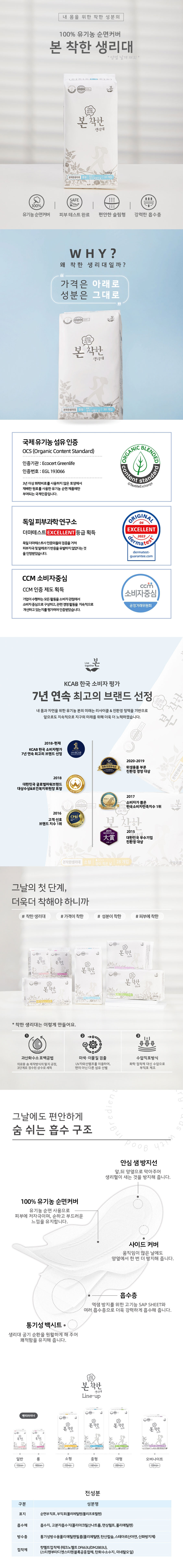 [유기농본] 유기농 순면커버 착한 생리대 중형 30P x 4ea