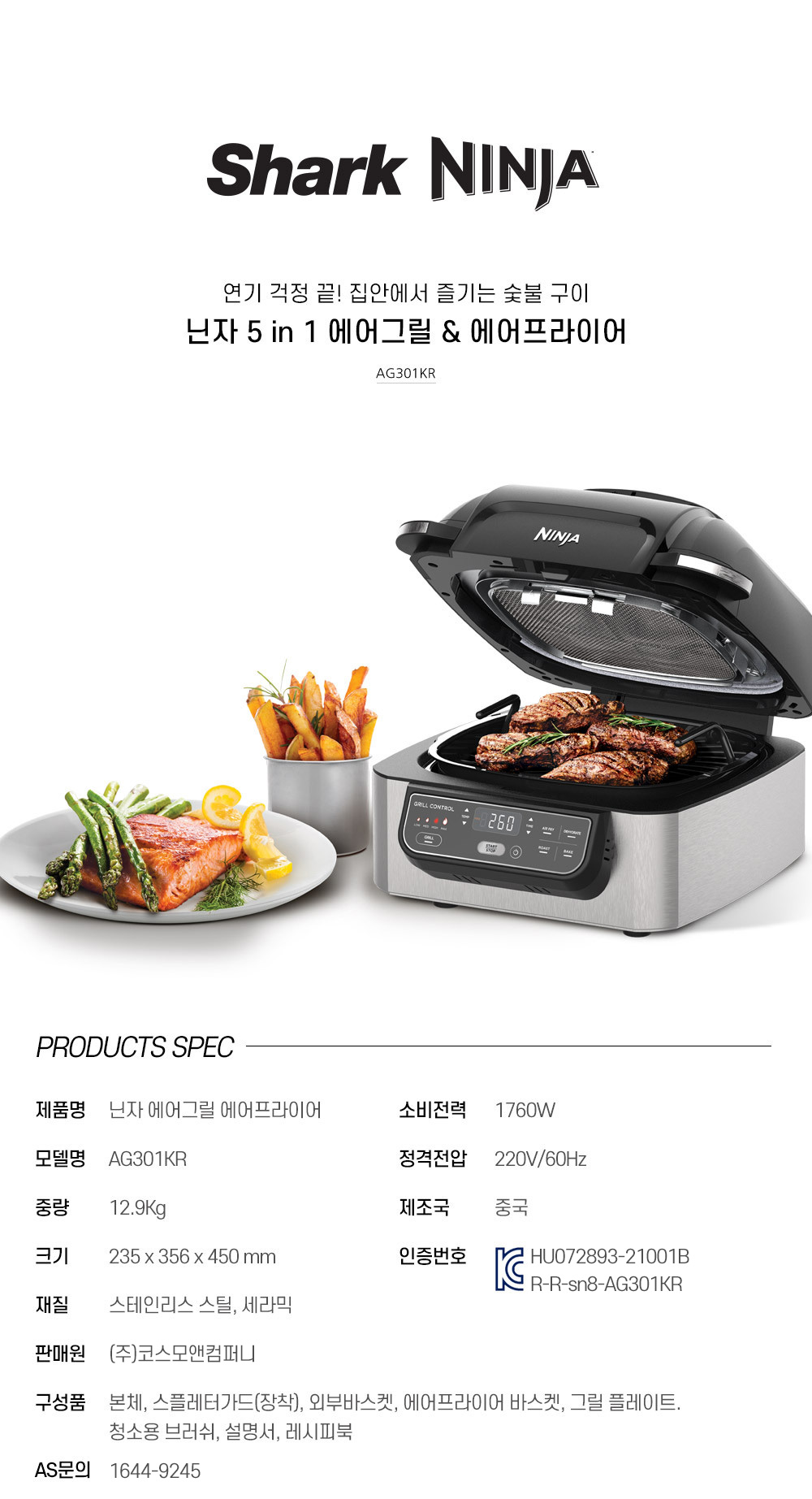 닌자 5 in 1 에어그릴&에어프라이어 AG301KR