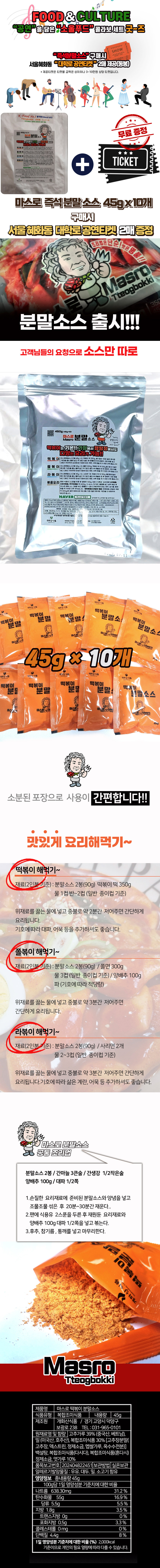 마스로 떡볶이 간편조리 분말소스 45g 10봉 + 대학로 공연 티켓 2매