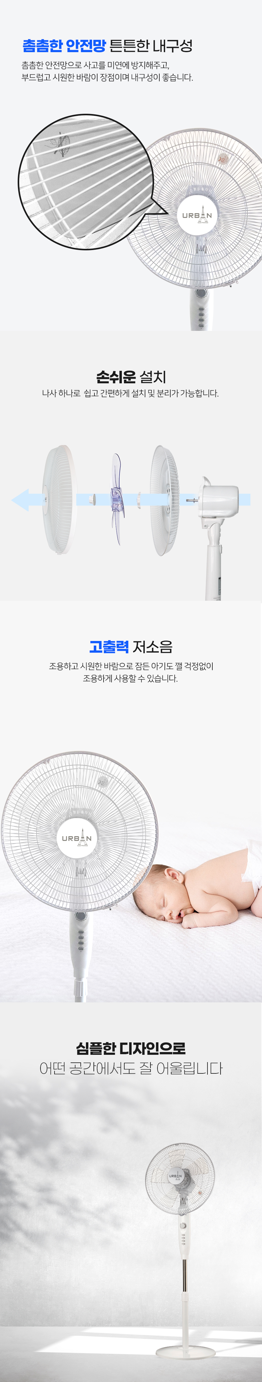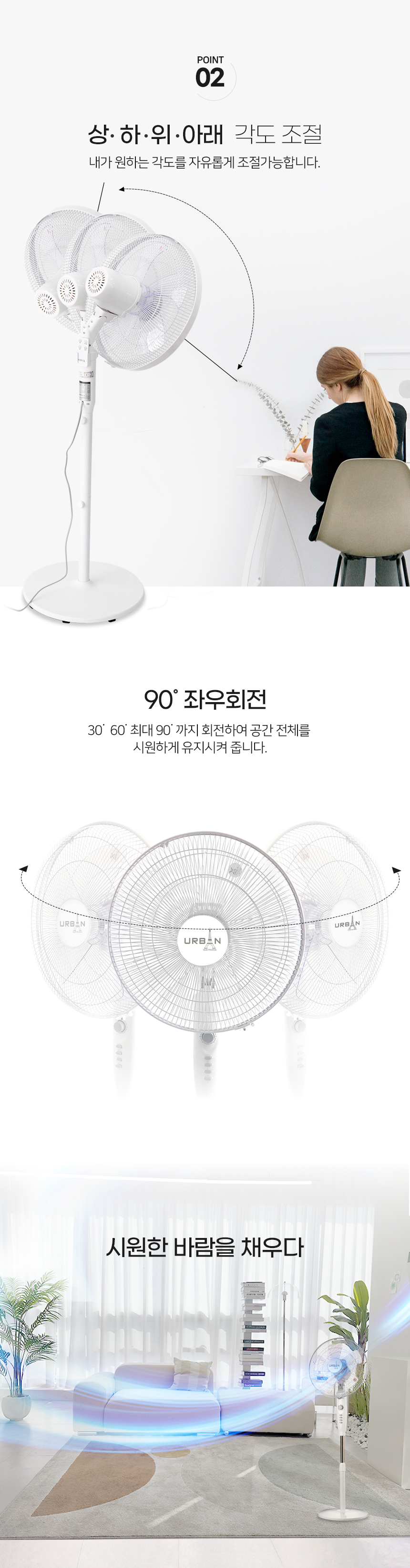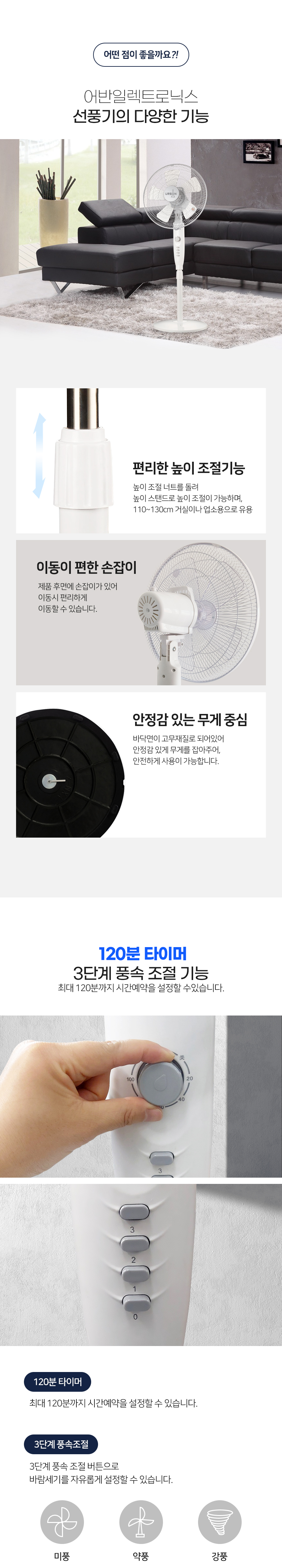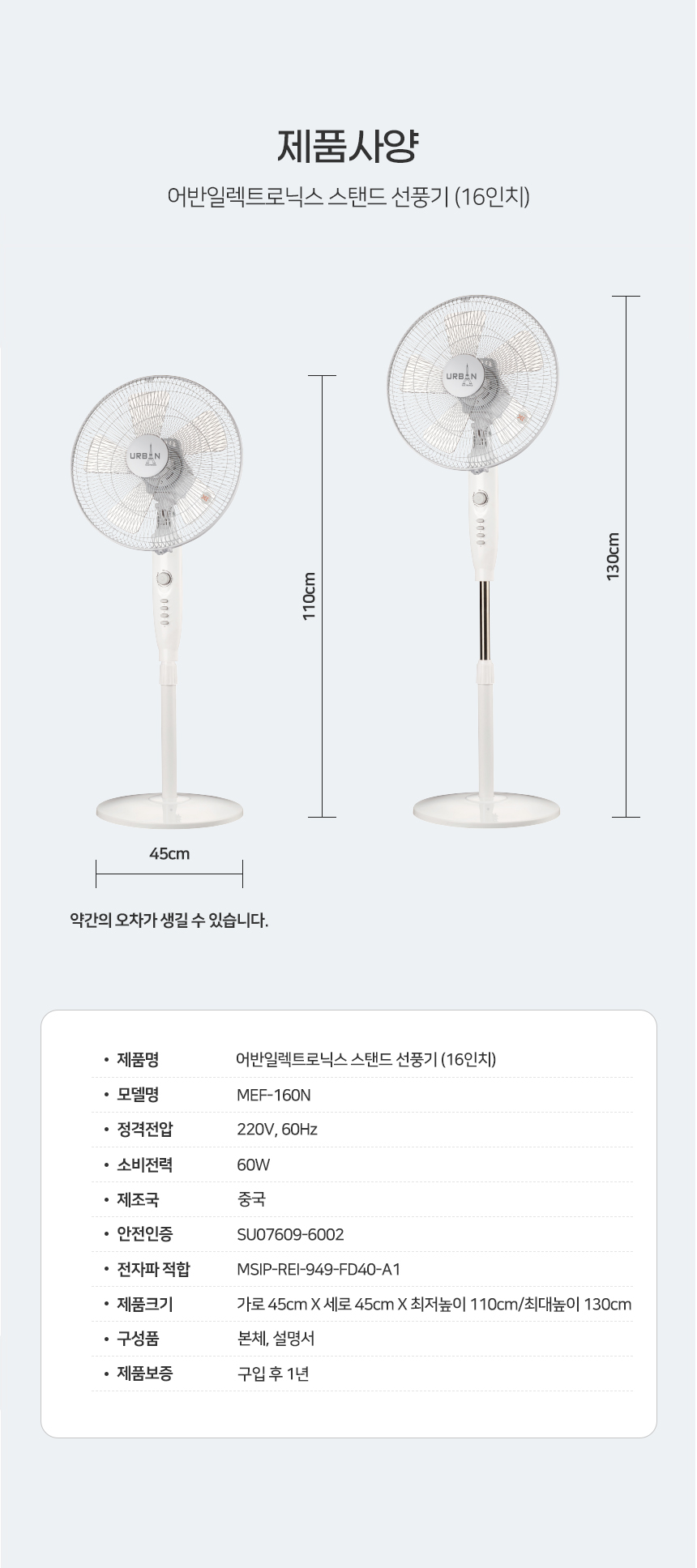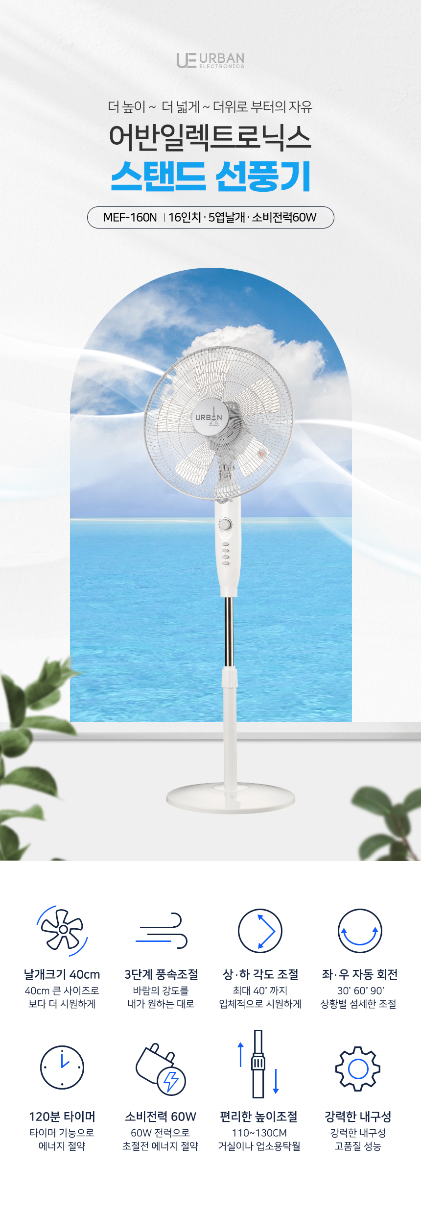 [MEF-160N] 어반일렉 16인치 스탠드 선풍기 화이트
