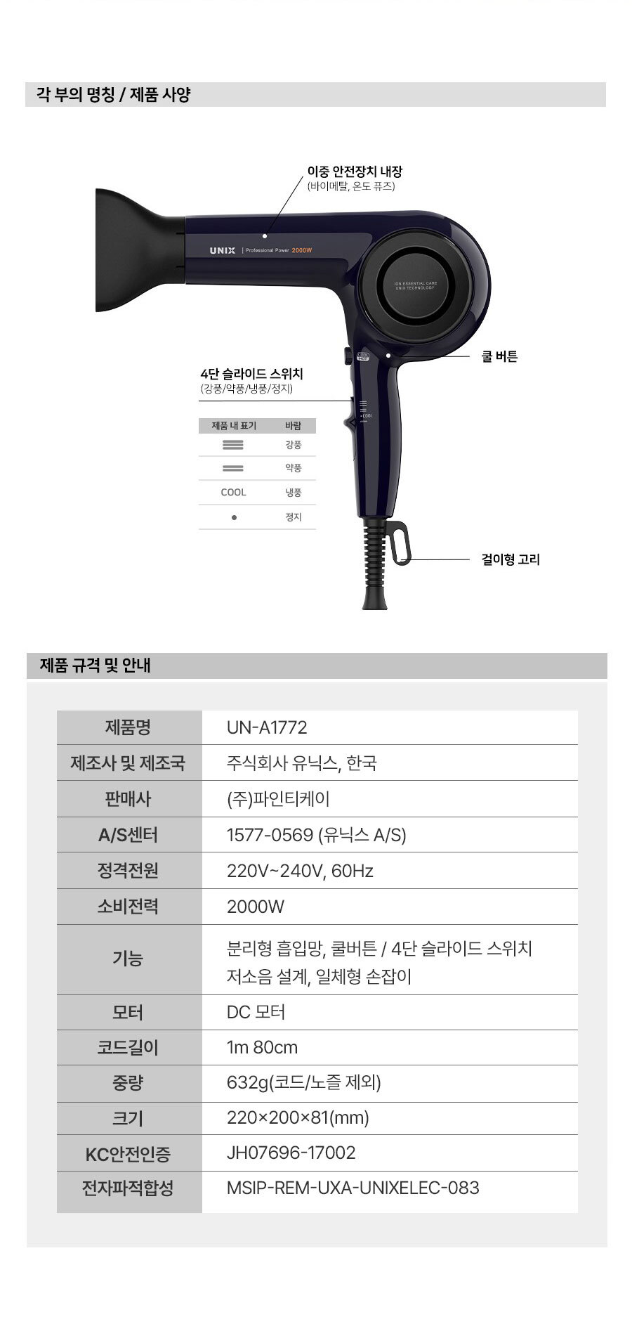 유닉스 전문가용 헤어드라이어 2000W UN-A1772
