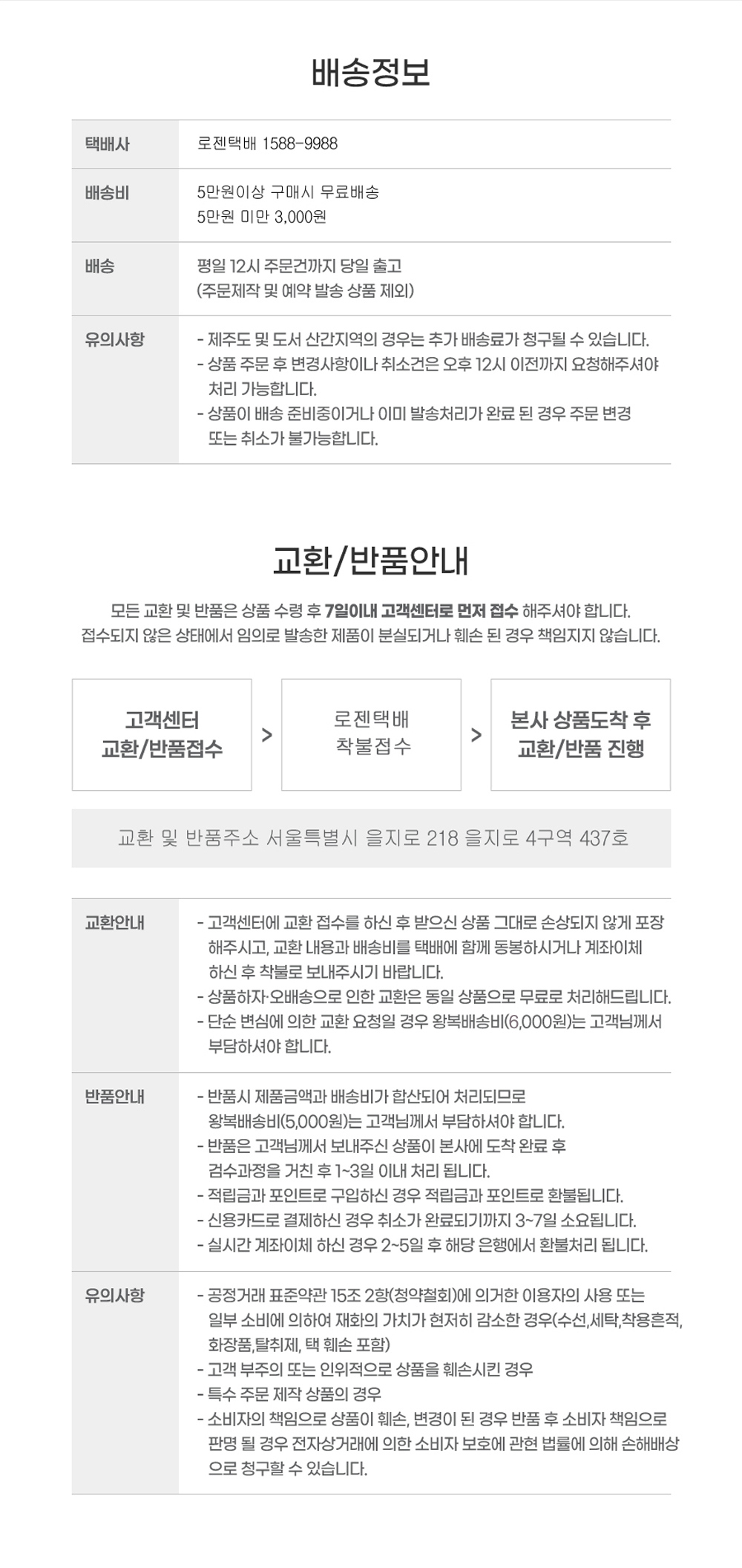 세탁방법 및 취급시 주의사항 제품 상세정보 참고