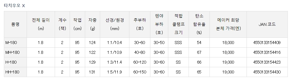 해당 상품은 [ 타치우오 X H-180 ] 모델의 상품입니다.