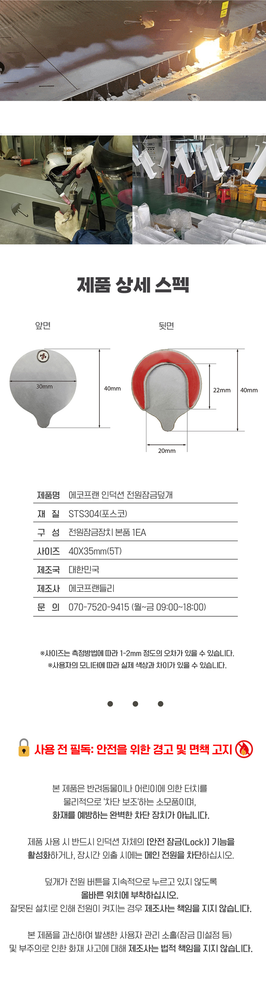 에코프랜 인덕션 전원 잠금 덮개