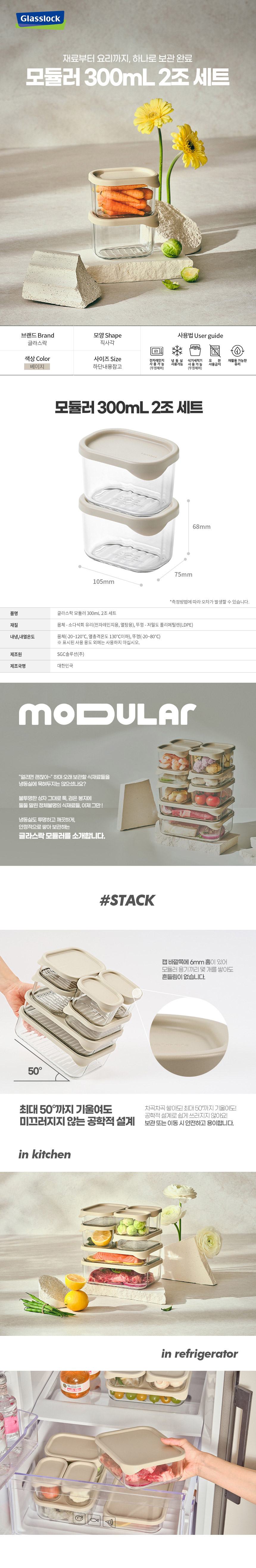 글라스락 밀폐용기 모듈러 300ml 2조세트